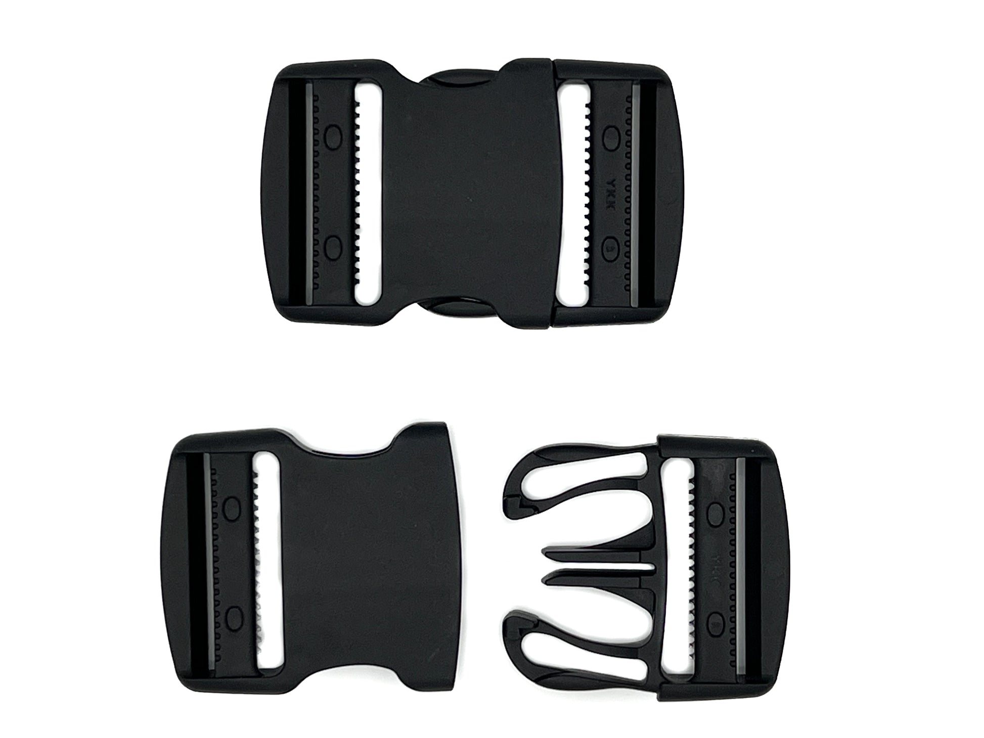 Buckle Replacement- YKK Heavy Duty Side Release for 2" Webbing - 1 each - heavy duty two sided adjustment black plastic replacement buckle for 2" webbing straps.